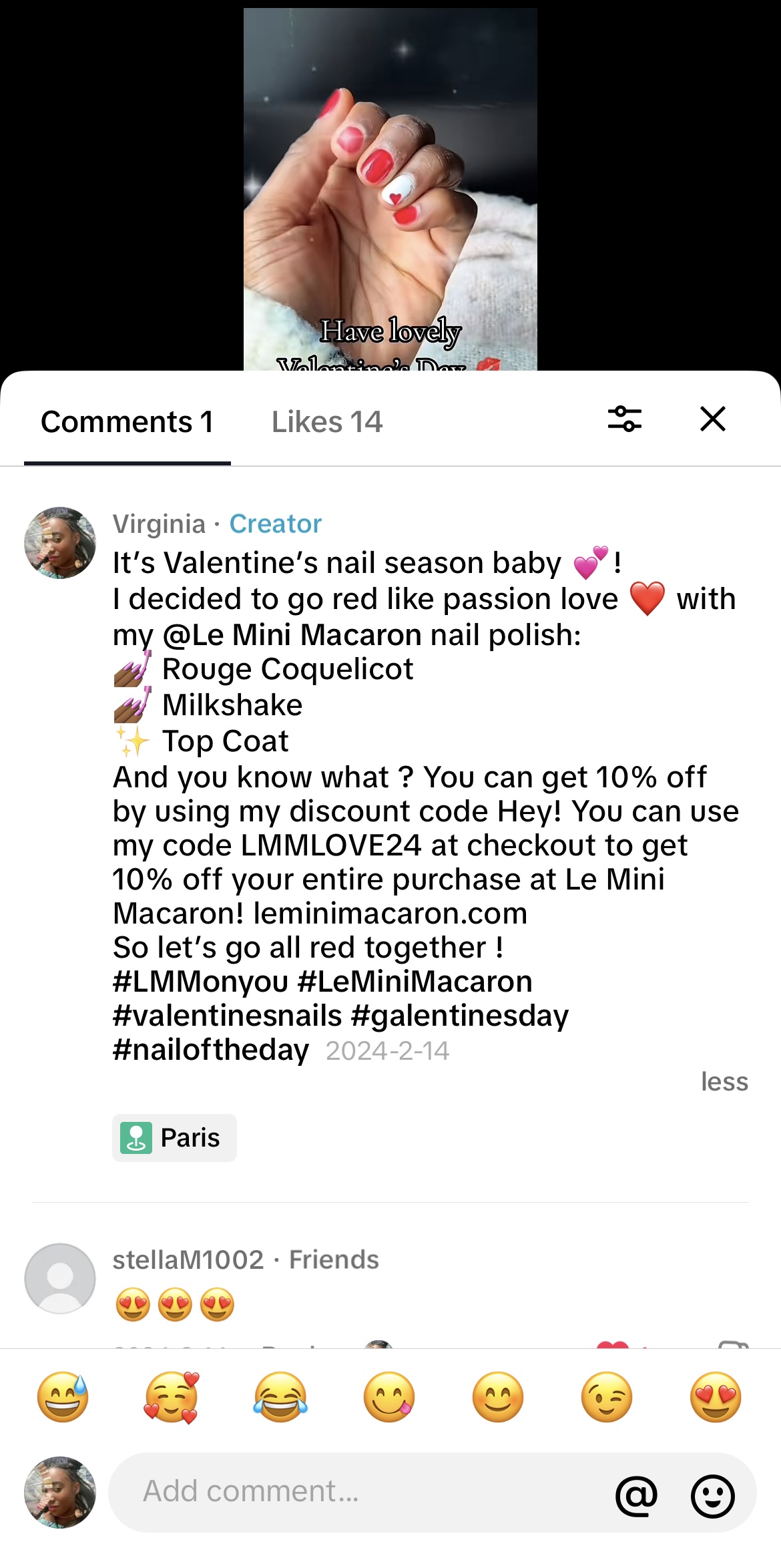 En effet, c’était l’opportunité rêvée de mêler mon métier de community manager et ma passion pour la marque. Car au-delà de leurs beaux produits, le mini macaron représente avant tout une manière de m’exprimer à travers ma manucure, de prendre soin de moi et de me valoriser.