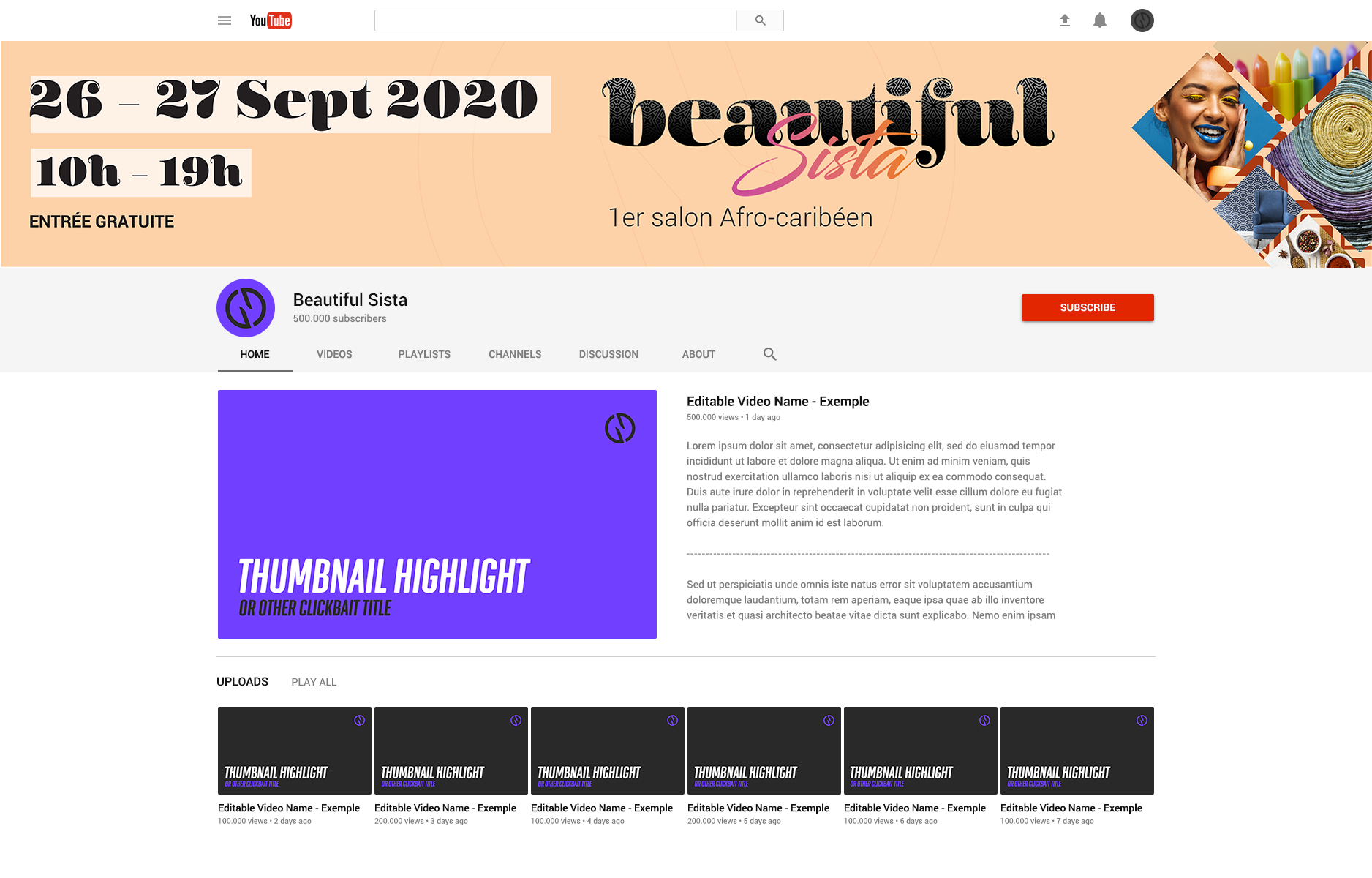 Conception des bannières des réseaux sociaux (Facebook, YouTube et Twitter).
